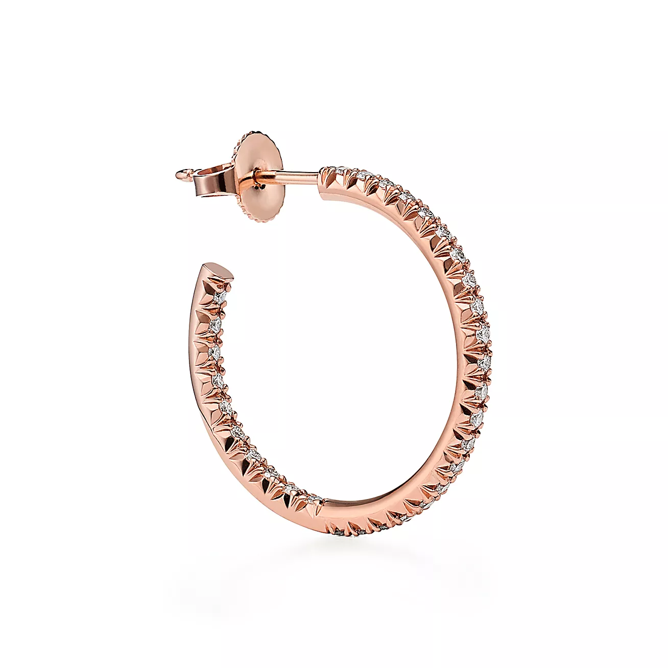 Tiffany Metro Hoop Earrings in Rose Gold with Diamonds, Medium (1:1 replica)